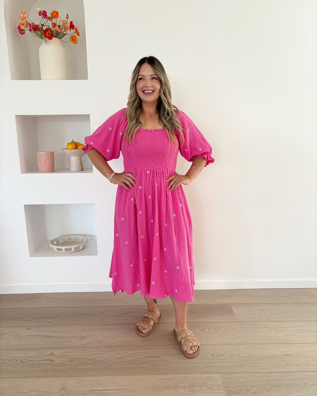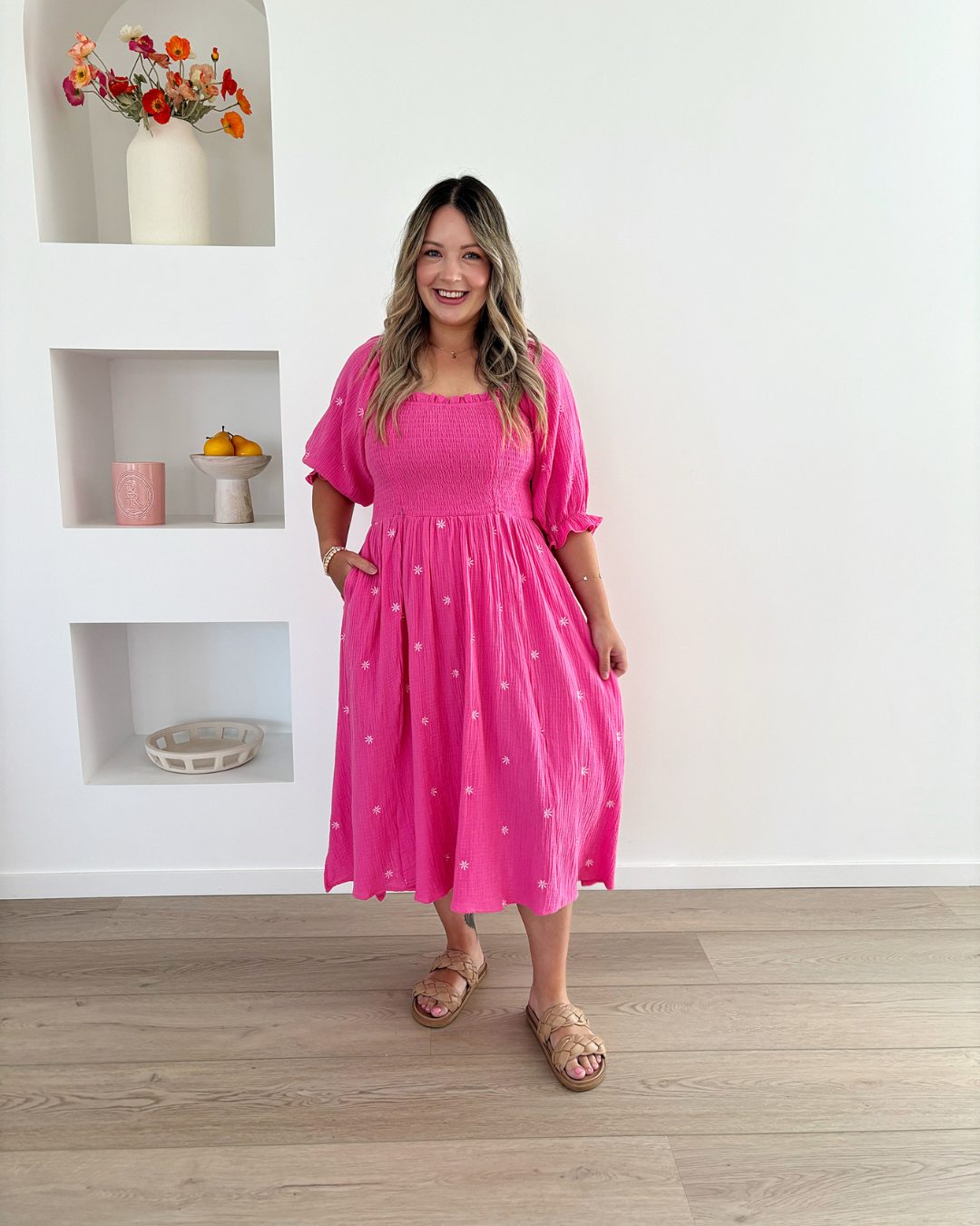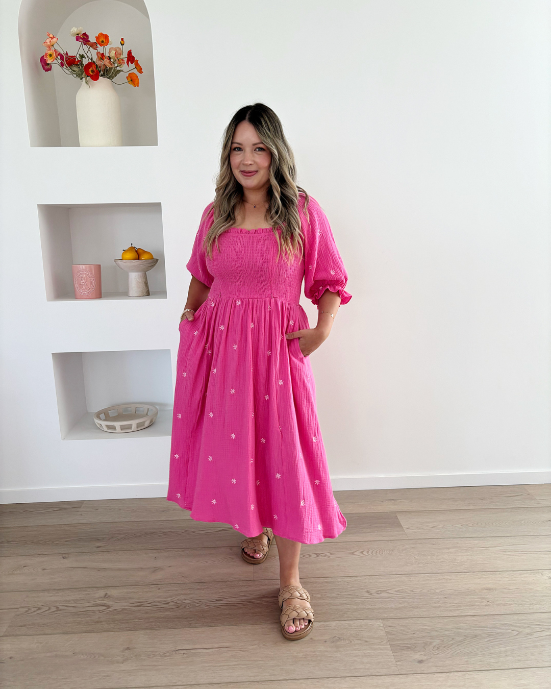 I'm really happy with the dress, I've never worn this style before but it fits really nicely and makes me feel comfortable and pretty in my after baby body